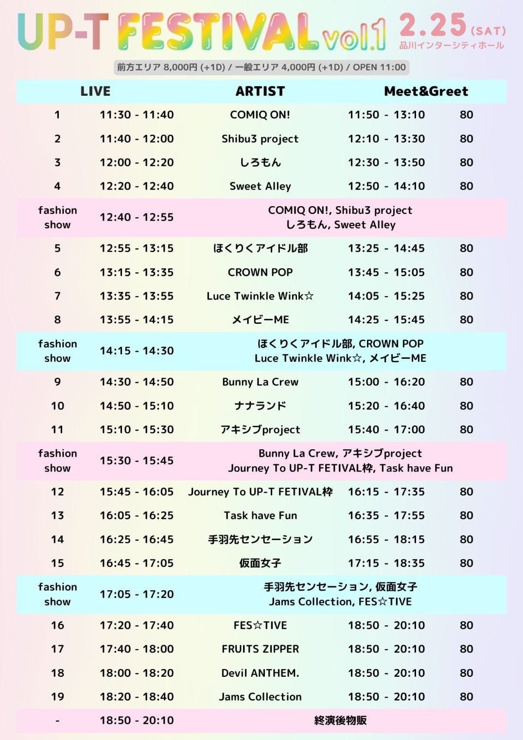 ■前方8000円/一般4000円 (+各1D)