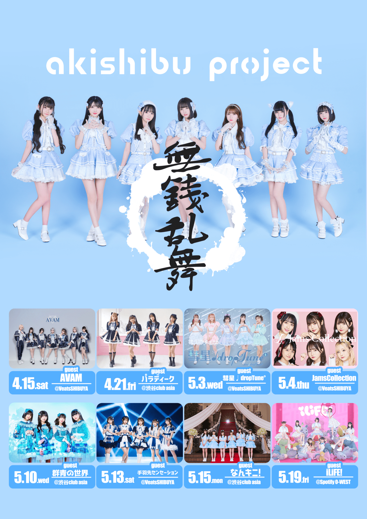 SCHEDULE BACK TO LIST 2023.5.13[Sat] Veats SHIBUYA アキシブproject 無銭乱舞-2MAN TOUR- アキシブprojectさんの2マンツアーにゲストで出演!!! VENUE Veats SHIBUYA [ URL ] 東京都渋谷区宇田川町3-3-1 TIME 開場 / 0:00 開演 / 0:00 TICKET 当日 未定 ACT