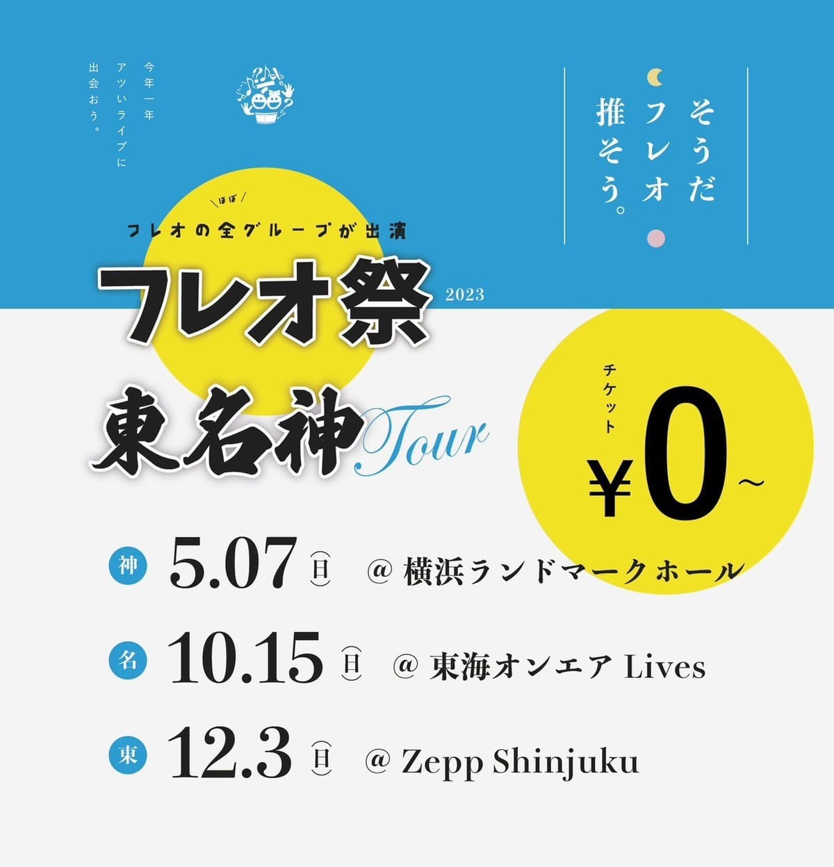 SCHEDULE BACK TO LIST 2023.5.7[Sun] 横浜ランドマークホール フレオ祭東名神Tour 『フレオ祭東名神Tour』 ■横浜ランドマークホール ■入場無料(+1D) ※詳細後日 VENUE 横浜ランドマークホール [ URL ] 神奈川県横浜市西区みなとみらい2-2-1 ランドマークプラザ5F TIME 開場 / 未定 開演 / 未定 TICKET 当日 未定 ACT
