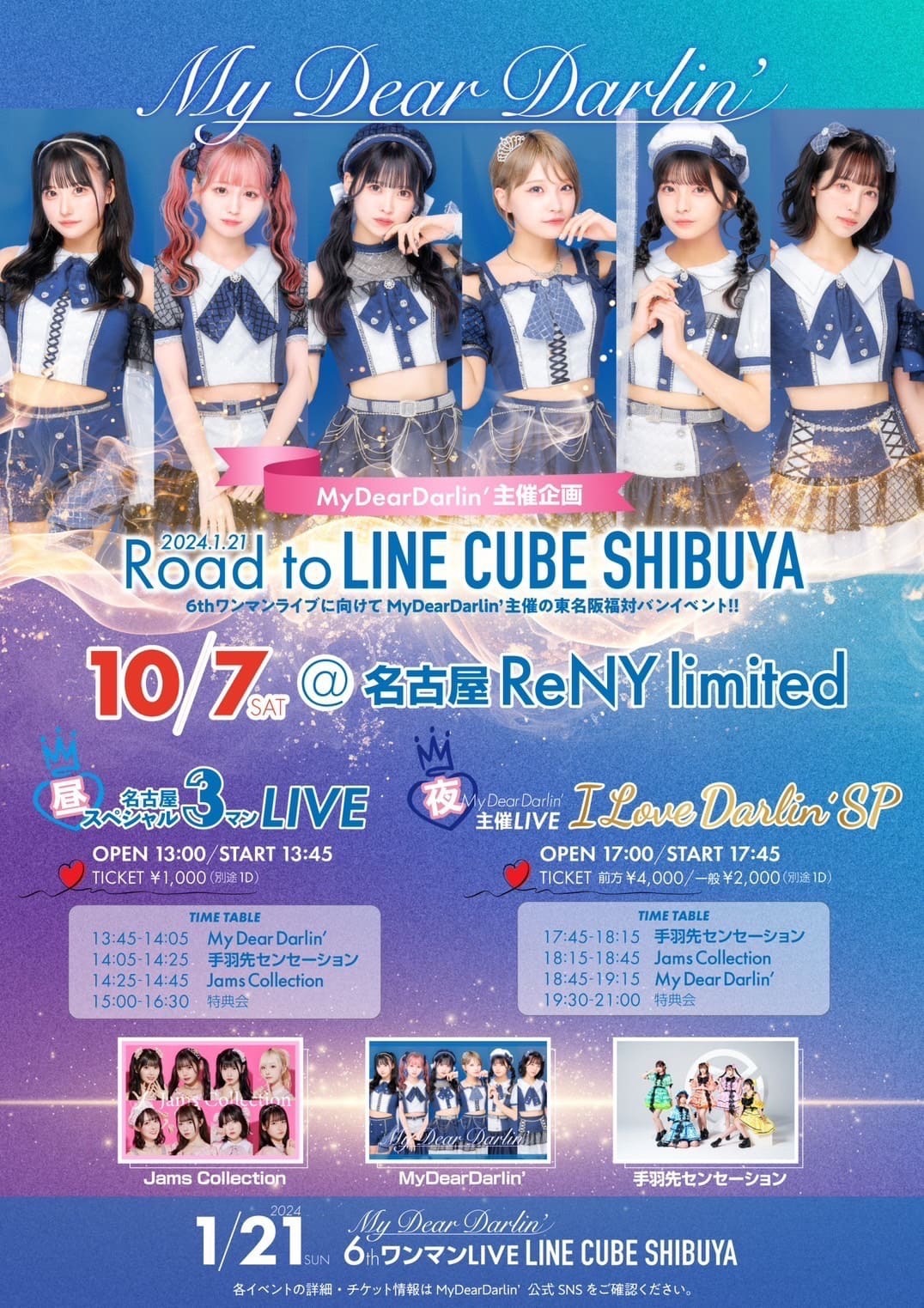 SCHEDULE BACK TO LIST 2023.10.7[Sat] ReNY limited Road to LINE CUBE SHIBUYA 【10/7】『Road to LINE CUBE SHIBUYA』 「名古屋スペシャル3マンLIVE」 VENUE ReNY limited [ URL ] 愛知県名古屋市中区栄3-15-20エンゼルビルB1B2 TIME 開場 / 13:00 開演 / 13:45 TICKET 前売 ¥ 1,000 / 当日 未定 ACT