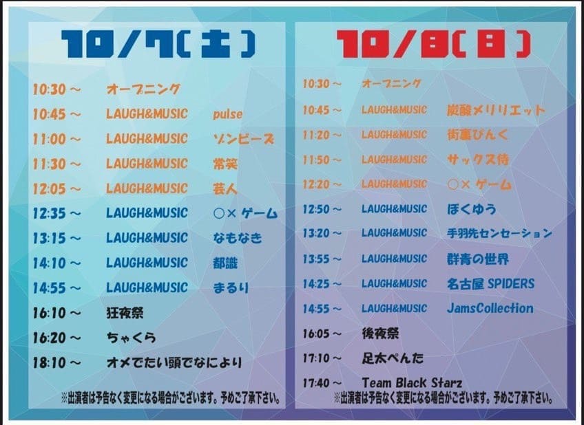 【10/8】『第63回 愛工大祭「LAUGH&MUSIC」』