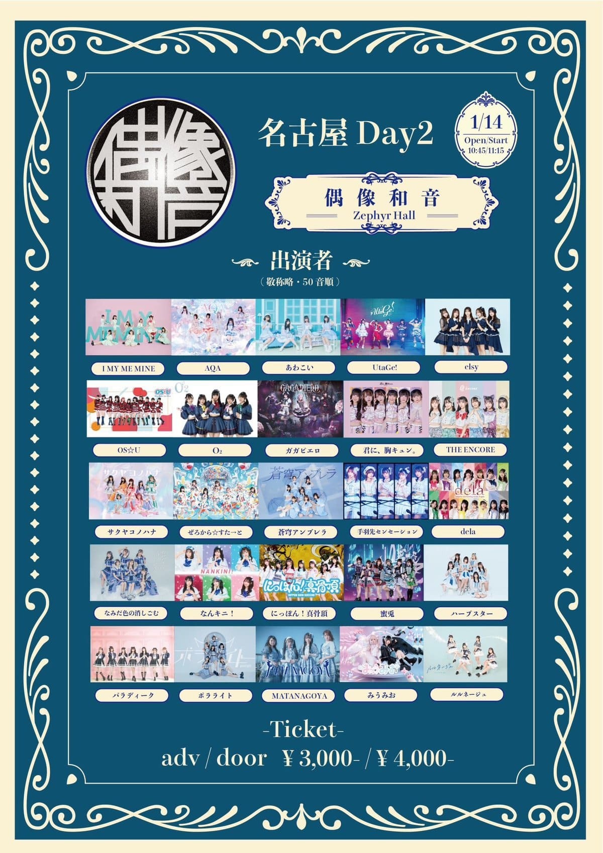 SCHEDULE BACK TO LIST 2024.1.14[Sun] Zephyr Hall 偶像和音-名古屋Day2- 偶像和音-名古屋Day2- ■Zephyr Hall ■10:45開場/11:15開演 ■前売り3000円/当日4000円 購入→ https://t.livepocket.jp/e/m4nft VENUE Zephyr Hall 愛知県名古屋市中区錦3丁目14−21 TIME 開場 / 10:45 開演 / 11:15 TICKET 前売 ¥ 3,000 / 当日 ¥ 4,000 ACT