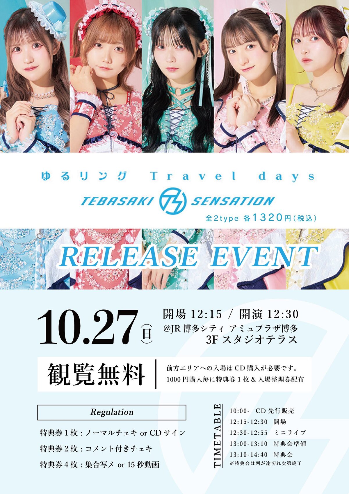 SCHEDULE BACK TO LIST 2024.10.27[Sun] JR博多シティ3F スタジオテラス ゆるリングTravel days ・日程:2024/10/27(日) ・イベント名:ゆるリングTravel days ・料金:観覧無料 ・開場日時:12:15 開演日時:12:30 ・出演時間 ライブ:12:30-12:55 特典会:13:10-14:40 VENUE JR博多シティ3F スタジオテラス 福岡県福岡市博多区 TIME 開場 / 12:15 開演 / 12:30 TICKET 前売 未定 / 当日 未定 ACT